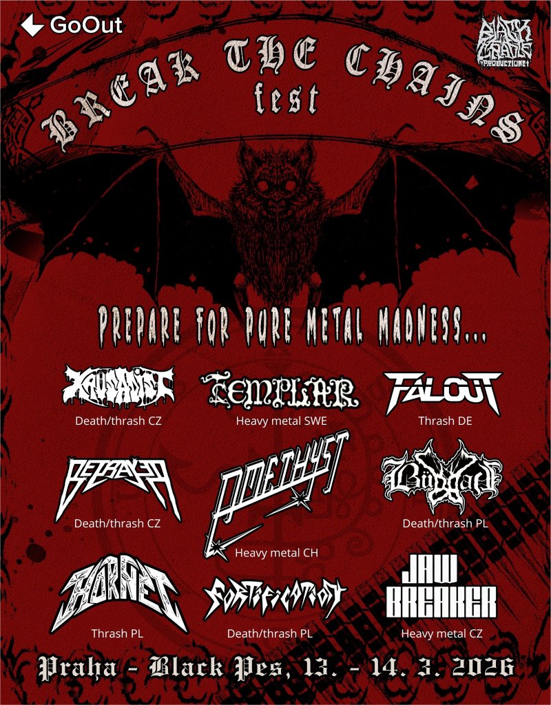 Calling all true fans of classic metal! The Black Pes Music Club in Prague’s Klánovice will become a temple of old-school metal on Friday, March 13, and Saturday, March 14, 2026. Join us as we ride the waves from the soaring melodies of traditional heavy metal to the unrelenting fury of death-thrash mayhem!